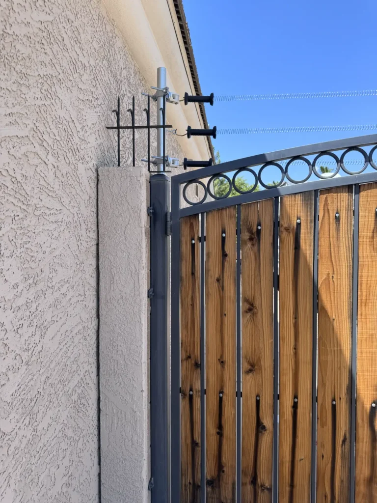 En Stetson Valley (Phoenix), una comunidad residencial planificada y relativamente nueva, los propietarios querían una mejora perimetral que se sintiera arquitectónica, no como un añadido improvisado. La solución fue Classic middle, instalado a lo largo de la línea superior del muro de acceso y del portón, creando una silueta nítida que se lee como parte de la geometría de la vivienda, mientras elimina el “primer agarre” que hace posible trepar.