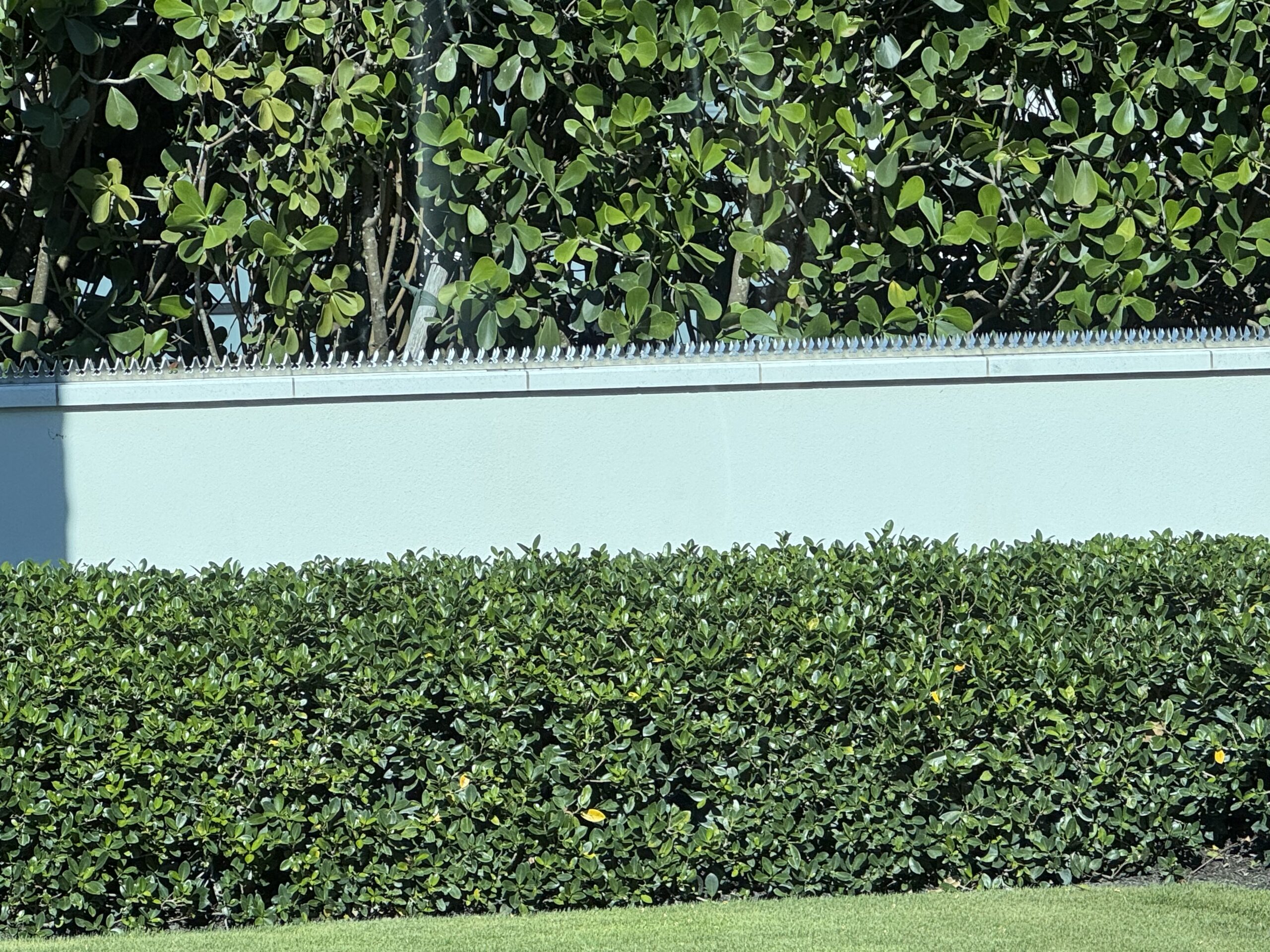 Pour une grande résidence privée dans un quartier côtier côté Golfe à Naples, Floride, nous avons installé la couronne anti-escalade Gothic Black sur près de 300 mètres de périmètre : murs de jardin, piliers de portail et portail principal de l’allée. De loin, elle se lit comme une fine ligne d’ombre ; de près, elle supprime clairement les prises de main, les appuis de pied et les points d’accrochage. (Adresse exacte non communiquée pour des raisons de confidentialité.)