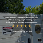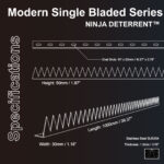 Technical diagram of Ninja Deterrent stainless steel security spikes, modern single bladed series, anti climb spikes with dimensions and mounting details.