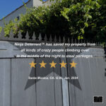 Discreet installation of the Classic Ninja Deterrent™ on a modern privacy gate - Ensuring security without disrupting the architectural flow.