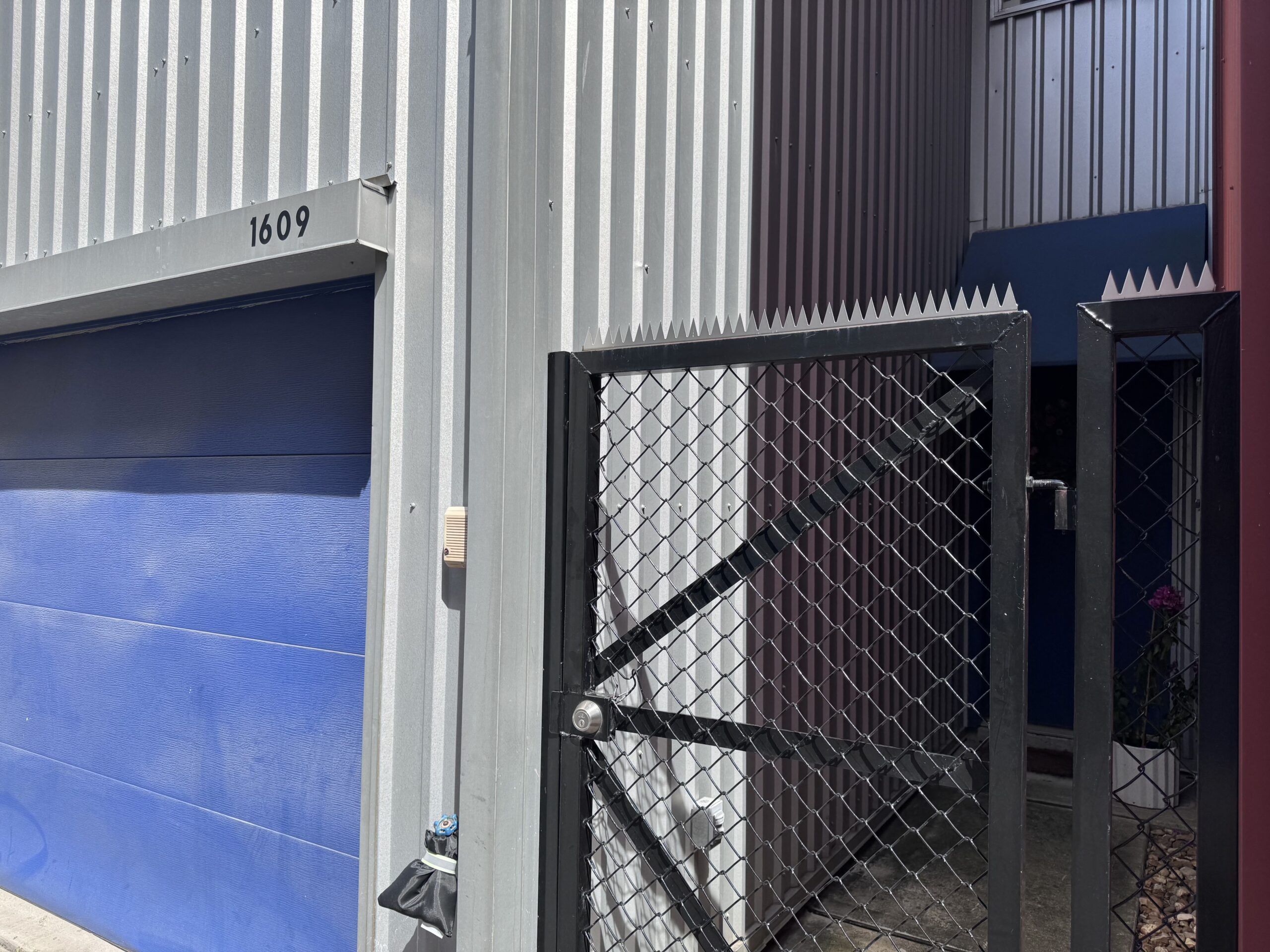 Na Tuam St, em Houston, instalamos um portão de entrada em aço com uma Modern serrated crown (aço inoxidável). Os dentes lineares ecoam a fachada de metal corrugado, preservando o visual industrial enquanto eliminam pontos de pega, apoios para o pé e pontos de gancho.
