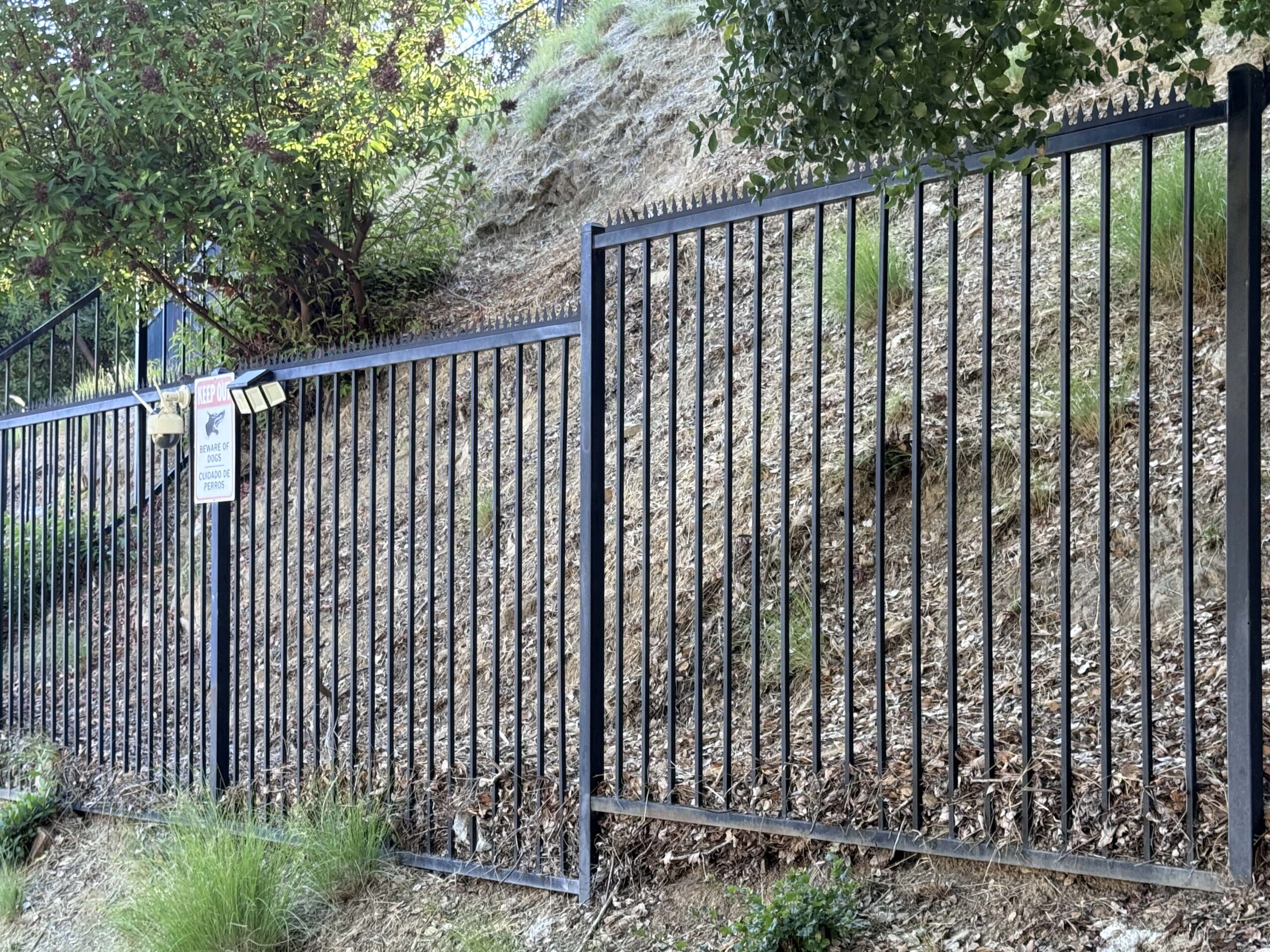 Propriedade em encosta em San Francisco: linha superior da cerca metálica reforçada com um detalhe anti-escalada contínuo