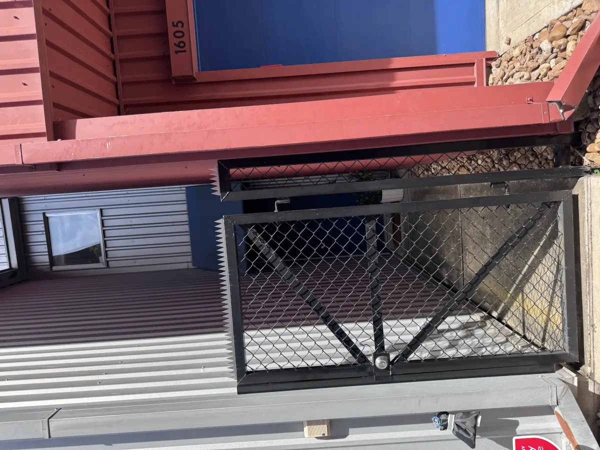 在休斯敦 Tuam 街,我们安装了一扇钢制入口大门,顶部配有 Modern(现代)系列锯齿状防攀爬尖刺(不锈钢材质)。其线性的锯齿结构与波纹金属外墙相互呼应,在完美保留工业质感的同时,彻底消除了抓手点、踏脚点和挂钩点。