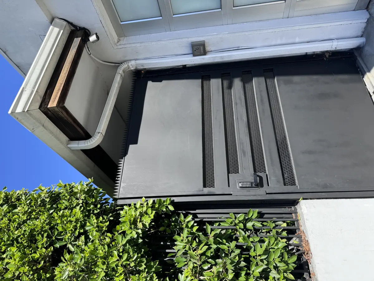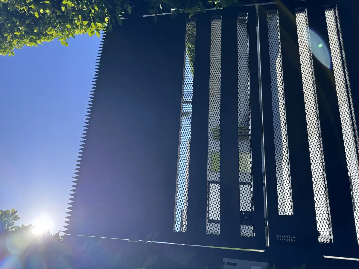 对于 Highland Ave 的侧门,我们在大门上轨选用了 Ninja Deterrent™ Gothic。其心形切割几何图形与住宅的黑色钢材、木栅栏元素及锻铁窗饰相得益彰——既具现代感,又不失古典细节。